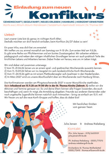 Anmeldung zum neuen Konfikurs (Konfirmation 2027)